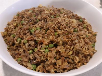 Add tamari sauce or organic soy sauce to the rice while it is frying with the veggies.